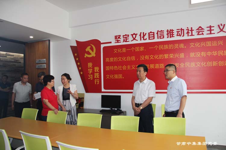 調(diào)研組一行首先參觀了集團(tuán)公司黨委宣傳陣地、黨員活動(dòng)室、談心談話室、閱覽室、健身中心等,通過查看黨支部標(biāo)準(zhǔn)化建設(shè)資料、聽取專題工作匯報(bào)和現(xiàn)場(chǎng)交談后,馬振亞副部長(zhǎng)對(duì)甘肅中集集團(tuán)黨委創(chuàng)新工作思路給予高度評(píng)價(jià),重點(diǎn)對(duì)集團(tuán)公司黨委黨支部建設(shè)標(biāo)準(zhǔn)化、樓宇黨建工作特色和亮點(diǎn),特別是中集理想國(guó)際寫字樓樓宇聯(lián)合黨支部通過街道、城市社區(qū)“串聯(lián)”城市基層黨組織,創(chuàng)新城市基層黨建發(fā)揮的橋梁紐帶作用給予了高度評(píng)價(jià),馬部長(zhǎng)指出“甘肅中集集團(tuán)樓宇黨群服務(wù)中心在城市基層黨建工作中開創(chuàng)了活動(dòng)共聯(lián)、資源共享、信息共用、文化共興創(chuàng)新方式,打造了特色示范帶動(dòng),為全省城市基層黨建提供了好的經(jīng)驗(yàn)和做法。在下一步工作中,要繼續(xù)加強(qiáng)黨支部建設(shè)標(biāo)準(zhǔn)化,創(chuàng)新活動(dòng)載體,不斷從中汲取科學(xué)智慧和理論力量,更好的總結(jié)經(jīng)驗(yàn)并進(jìn)行推廣,為全省非公企業(yè)和城市基層黨建工作做好榜樣標(biāo)桿!