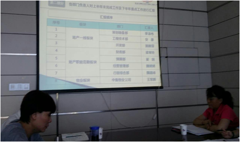 周啟濤總經(jīng)理結(jié)合房地產(chǎn)公司、物業(yè)公司2015年度上半年運(yùn)營(yíng)管理情況,對(duì)上半年工作進(jìn)行總結(jié)點(diǎn)評(píng)。并對(duì)公司存在的問(wèn)題,尤其是戰(zhàn)略執(zhí)行、員工綜合素質(zhì)提升、創(chuàng)新經(jīng)營(yíng)管理、物業(yè)服務(wù)品牌建設(shè)提出了具體要求,并對(duì)下半年重點(diǎn)工作進(jìn)行了安排部署和新項(xiàng)目拓展、啟動(dòng)進(jìn)行了詳盡的規(guī)劃。